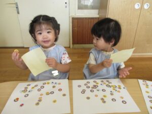 右: 色んな落ち葉をみつけたよ♪