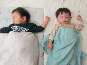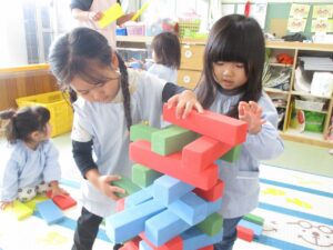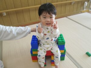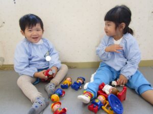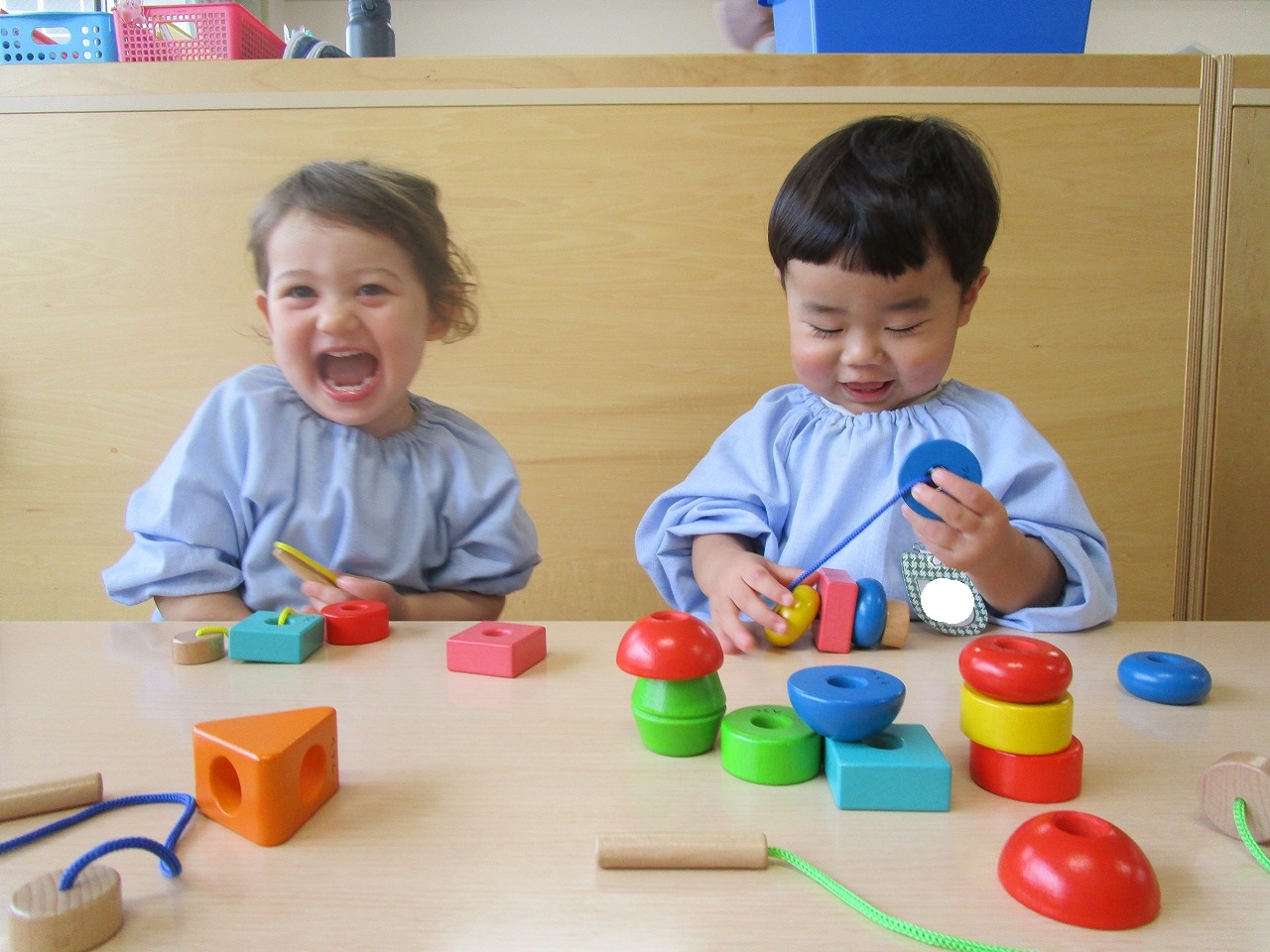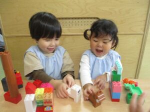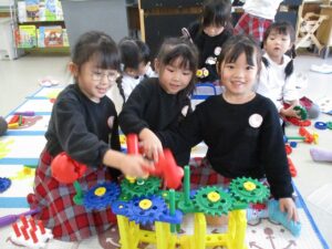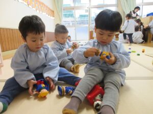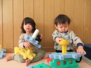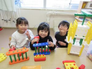 左: 新しいおもちゃをたくさん組み立てたよ!