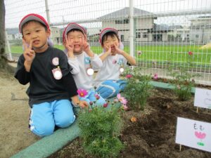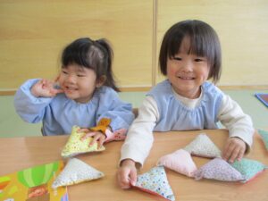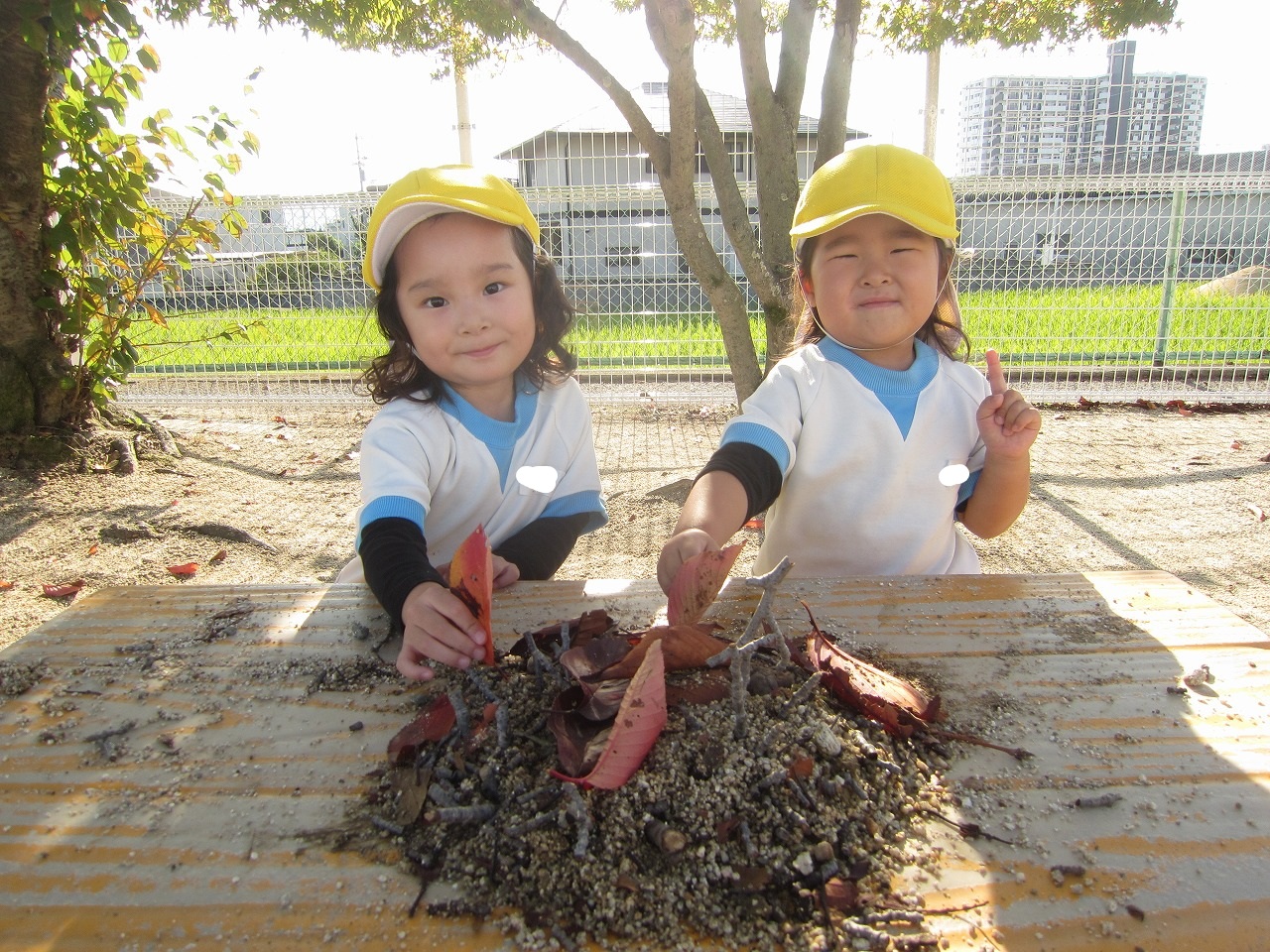 すみれヒヨコぐみのお友達が秋の食べものに変身して
