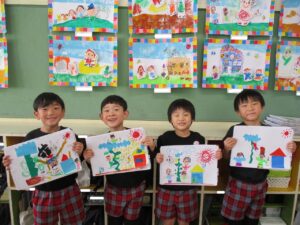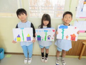 右: 折り紙でジャックと豆の木の絵を作ったよ!!